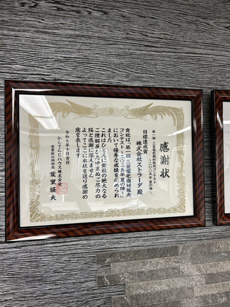 かんでんEハウス様より、関東へお越しいただき個人の表彰もしていただきました!