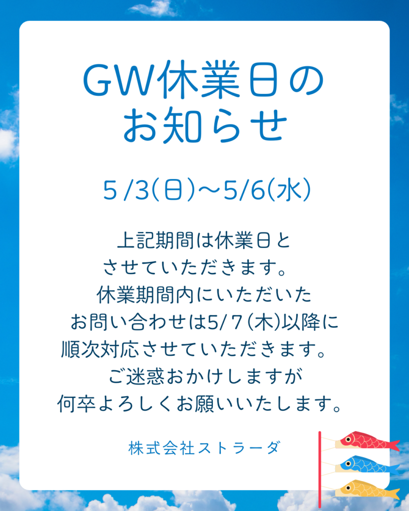 2026年度 GWのお知らせ!